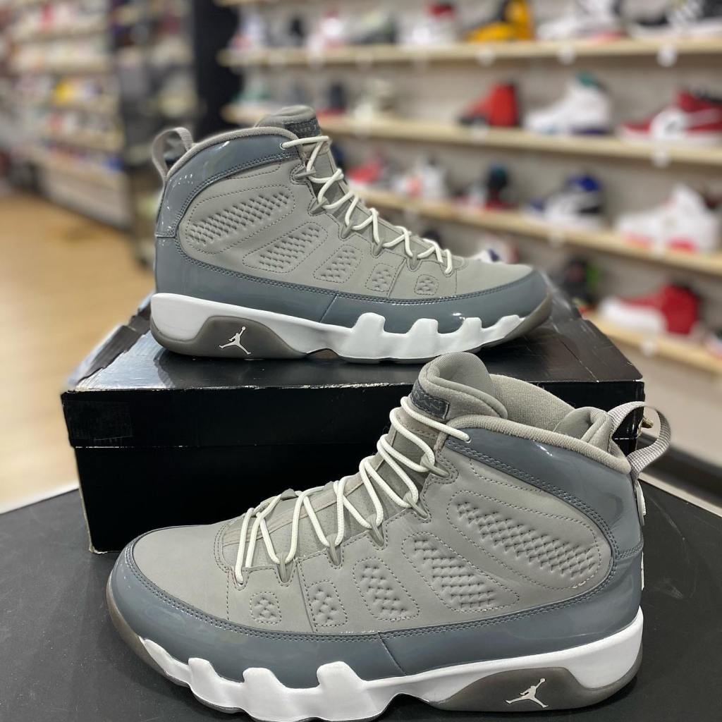 Nike Air Jordan 9 Particle Grey gives monochromatic colourways a good name. Deep black sets the stage as it dresses up the breathable mesh upper and padded tongue, while grey leather reinforcements in the toe, mudguard, heel and ankle areas seamlessly complement the inky base. Hits of bright berry red in this Air Jordan 9’s tongue label and pull tab add a vibrant touch to an overall simple palette. Underfoot, the grey midsole packs Air-Sole units under the heel and ball for comfortable lightweight cushioning that allows for a wide range of quick movements.